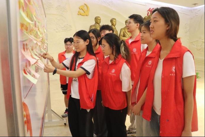 在湘潭党史馆大厅,实践团成员重温了入团誓词,表达了“请党放心 强国有我”的铮铮誓言。