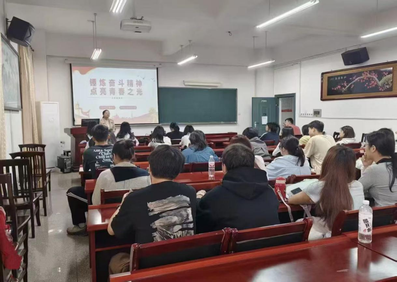 于新校区F205开展“锤炼奋斗精神 点亮青春之光”主题团课。学院团委书记杨俐担任主讲人,70余名2025级学生到场聆听学习。