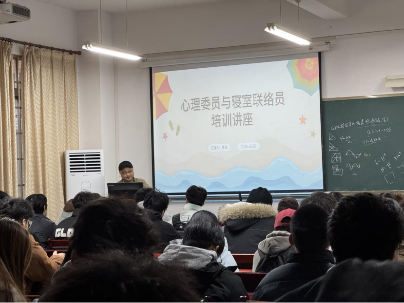 在F205教室成功举办心理委员与寝室联络员培训讲座。本次讲座由学生办公室主任李进主讲,旨在提升学生心理骨干的心理问题识别、倾听沟通及初步干预能力。