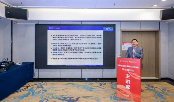 田智鲲副院长率队参加本次会议。统计学教研室主任方江林老师在大会上作了《A partially linear framework of online updating for streaming data sets》的学术报告,分享了最新的研究成果与思考,报告内容受到与会专家的广泛关注。